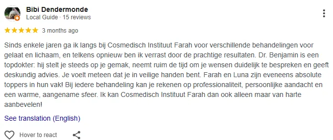 Cosmedisch Instituut Farah is een top beoordeelde kliniek in Dendermonde.